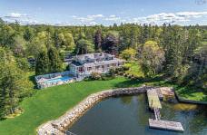 HERE IS THE OPPORTUNITY TO OWN AN EXTRAORDINARY GRAND ESTATE Here is the opportunity to own an extraordinary grand estate with stunning views of Mahone Bay Islands (Saddle, Graves, Mountain and Tancook) and the Atlantic Ocean beyond. The land elevation of the main house provides towering south easterly views, and the boathouse has incredible water scenery at ocean level with 170 feet of beach water frontage and an L shaped wharf for protected anchorage. On three PIDs, there are 3.9 acres sloping gently down to the oceanfront. An additional neighbouring 4 acres with 150 feet of frontage and an additional wharf could also be part of the sale. $5,999,000 CDN