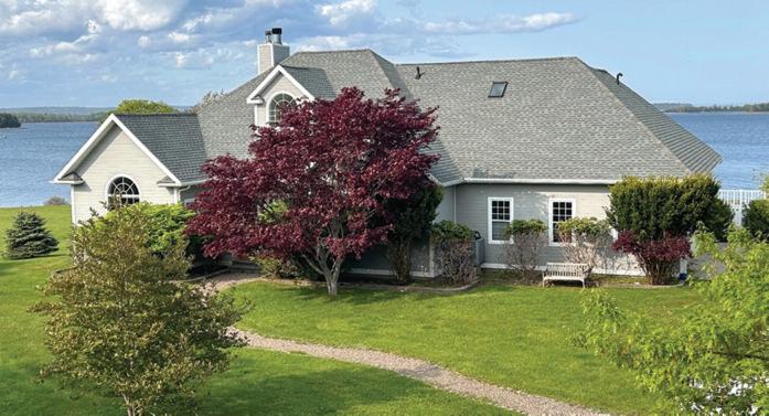 CONTEMPORARY TWOYEAR-OLD HOME with every modern convenience and feature imaginable. An incredibly livable home. Situated on 32.5 acres with 121 feet of waterfront on the LaHave River. Four bedrooms, 3.5 bathrooms, a 50-foot indoor lane pool and an open concept kitchen dining/living room all add up to 3318 square feet of living space. Placed on a hilltop, the house faces south with stunning views of the LaHave River winding around islands before opening up to the Atlantic Ocean. Straightforward and sensible planning went into the layout of this home. $1,999,000 CDN