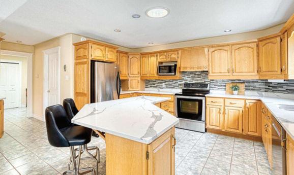 tasteful finishes throughout. The custom kitchen is a chef's delight, equipped with stainless steel appliances, a generous walk-in pantry, granite countertops, and a large island with a breakfast bar. $749,900. Goffs.