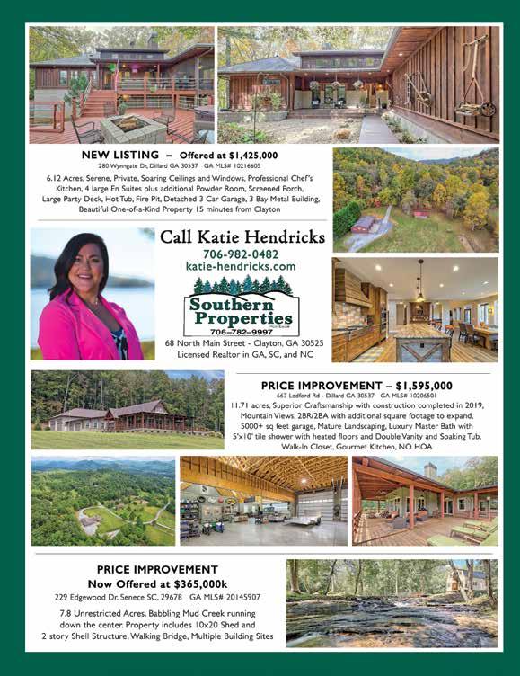 Burton, Lake Rabun or downtown Clayton. With a large square footage of covered porches, large open deck, sunroom & a brick floor fire pit area, there is good reason to stay outdoors & an inviting place to enjoy the view of Tiger Mtn. The style is a perfect match for the location w/ timeless board & batten siding. The interior of the home is welcoming w/ a spacious living room & KIT. Pine & up-to-date laminate floors also complement the style. On the main floor level, there are 2 BRs, one w/ a nursery attached, as well as the oversized primary BR w/ access to the covered porch. On the lower level is a 1 BR guest suite w/ full BA & sitting area. A high crawl space/basement is well lit & provides a large amount of storage. For hobbies, big toys or work, the stand alone, brightly decorated shed/workshop is a great feature. $650,000. MLS 10351568. Scott Poss 706-490-2305