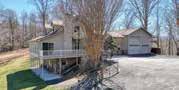SPACIOUS 3/3 CABIN STYLE HOME, nice mix of wood ceilings, floors & walls. High ceilings in Great Room w/beautiful stacked stone cozy FP, open to the Dining area & KIT. All 3 floors have a BR/BA each level. Lower level has lg Family Room, opens out to cov’d patios. Cov’d wrap deck/porch off the GR. Near Lake Nottely & Marina, public access for boating & fishing. No restrictions or HOA fees. $424,900. O414594JS. NEAR LAKE NOTTELY