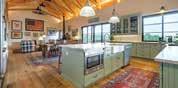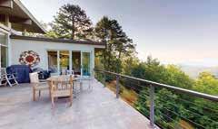 main level w/large walk-in closet, spa-like ensuite w/heated floors, plus an outdoor shower! Adjacent to the suite, the laundry room adds convenience. A striking staircase (& elevator) leads to a mid-level office w/ beautiful views & a living area perfect for guests. Each guest suite has an ensuite BA. A stone path leads to a