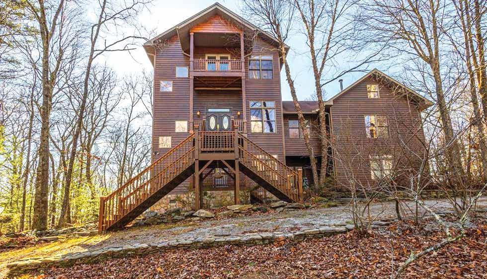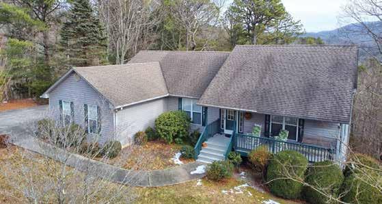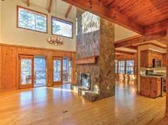 baths. Vaulted ceilings with exposed beams and huge rock fireplace in living room. Glass garden doors to access the back decks where you can enjoy the view. Leave open and relax to cool mountain breezes and listen to the sounds of the rushing waterfall. 2 spacious bedrooms and 2 baths on main floor, one with a huge walk-in shower. Country kitchen with big open dining area with plenty of glass windows. Lower level has 2 bedrooms, 1.5 bath, large garden tub, bidet, laundry room, family room w/built in shelves, and a deck with a view as well. You can hear roar of the waterfall and walk to it from this property off Tahoe. Most furniture will remain, except for family heirlooms, and personal items. The home is set-up perfectly for a vacation rental with exterior entrances off both levels. Lots of closets and storage space. It has easy access off paved streets and a paved driveway with plenty of parking. Just a few minutes from wineries, waterfalls, hiking trails, and ziplining in Scaly Mtn, NC. Only 20 minutes to Highlands, NC. The property is located in Sky Valley, Ga, but you are not required to join the Club. Only 20 minutes to Clayton, GA. Elevation of around 3100 feet where the summers usually stay cool. • 0.58 Acres • 2,448 SF • 4BR/3.5BA • $575,000 • MLS 10400862 • Penny Ramey 706-490-1610