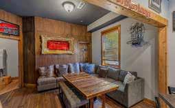 Enjoy this creekside home offering one-level living with two bedrooms, two and a half baths, and a bonus bunk room. You’ll find the primary king bedroom with vaulted ceilings, reclaimed wood accents, outdoor access, and an ensuite bathroom with double vanity and a tub/shower combo. The open concept living area boasts vaulted ceilings, inviting fireplace, and a beautiful banquette exquisitely set for friend and family gatherings.