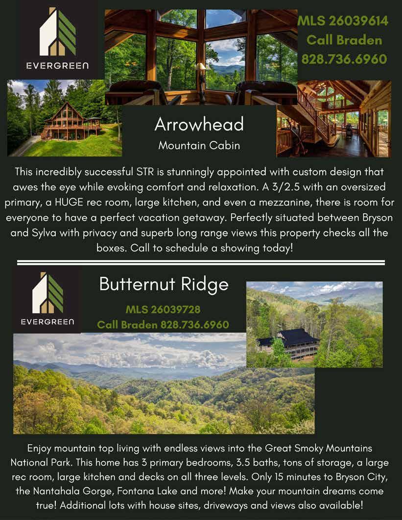 HIGH TOP MTN - LOT 20 VAIL PASS. WHITTIER. Great location off of Hwy 74. 1.24 AC. STR allowed. Potential views w/ tree trimming. Easy access onto property. $21,900. MLS 26035385 LOT 43 SILO VIEW - MARBLE. 3.05 AC. VALLEY RIVER WALK COMMUNITY. Level cleared home site w/ well maintained driveway-minutes to MurphyCommunity water & underground electric. $49,500. MLS 26038181 2611 WAYEHUTTA - CULLOWHEE. UNRESTRICTED.