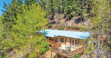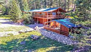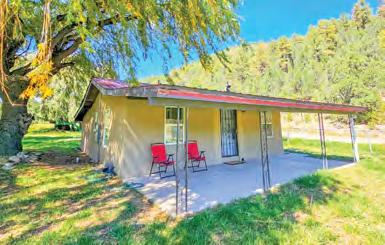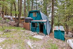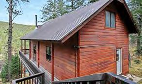 with cathedral ceilings and exposed beams over an open living area that includes the kitchen, dining, and a cozy woodstove for winter nights. Bedrooms fit queen beds, and the bathroom features a tub/shower. A spacious loft offers extra sleeping or lounging space. Outside, a fullwidth covered porch invites you to unwind and enjoy the rustling aspens and pines. MLS# 171751. $324,000.