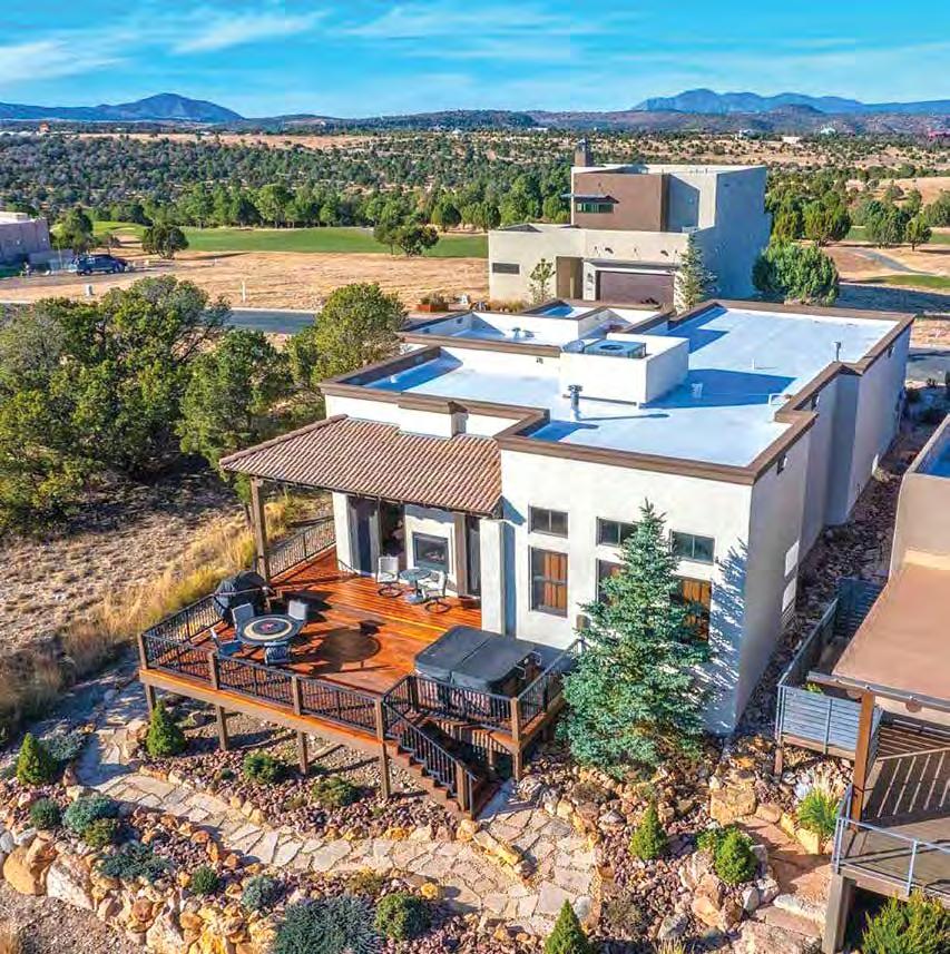 MOUNTAIN RETREAT - Private 7.6-acre setting w/views & towering trees. Unique dome-style 4BR, 4BA home w/remodeled kitchen, granite island, copper sinks & custom cabinetry. Sunroom w/wood stove opens to covered/ uncovered decks. Spacious primary suite w/sauna, office & tiled vanities. Includes game room, kiva fireplace, hot tub, private well & new roof (2024). Minutes from Ski Apache, Spencer Theater & golf. MLS# 132899. $975,000. 205 RACQUET DRIVE, B-2 – Remodeled 2BR, 2½BA condo w/SB views & “mountain feel w/contemporary flair.” Bright interior w/wood floors, leather-finish granite counters, pantry & ½ bath/utility area. Furnished, 2 fireplaces (gas & wood), central heat & A/C, water softener, RO system, garage w/storage, reserved front parking & overflow in back. Near Links Trail & Golf Course. Sofas convert to queen beds. Turn-key: linens, dishes, small appliances included. Buyer warranty up to $550.