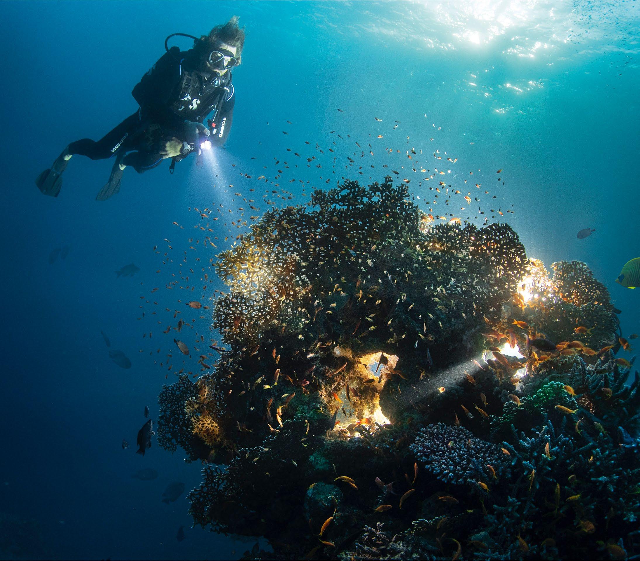 Que ce soit au-dessus ou au-dessous de la ligne de flottaison, en traversant des collines de granit, des champs de lave volcanique, de vastes plaines ou des oueds, ou en planant dans l’air pur, nous accueillons l’esprit d’aventure.