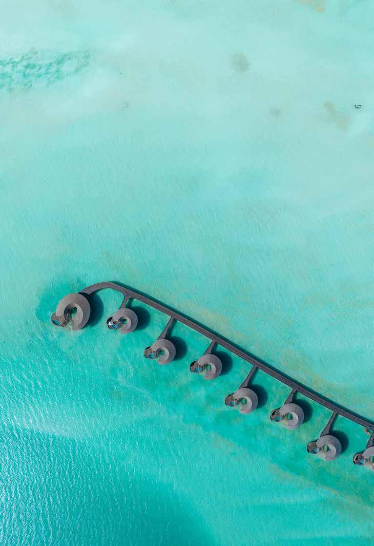 Das von Killa Design entworfene Resort verfügt über 73 Zimmer, darunter Überwasser- und Strandvillen. Die charakteristischen Edelstahlkugeln der Überwasservillen sind von der natürlichen Umgebung, insbesondere von den Korallen, inspiriert und spiegeln das Wasser, den Himmel und das Riff unter ihnen wider. Die Villen im Landesinneren sind von Sanddünen inspiriert, wobei jede Villa für sich steht, um den Gästen ein Gefühl von Privatsphäre zu vermitteln.