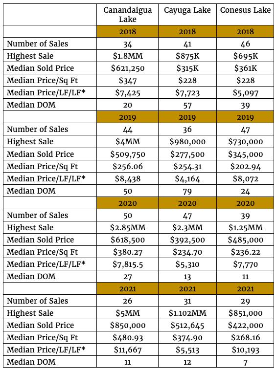 *Median Price/Linear Foot of Lake Frontage is for sales $>$500K