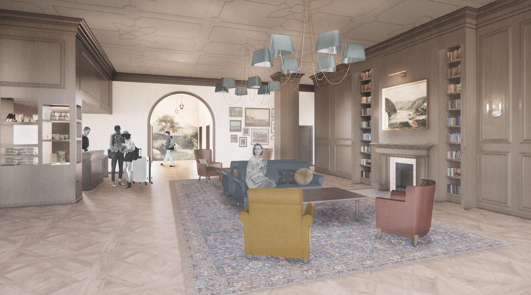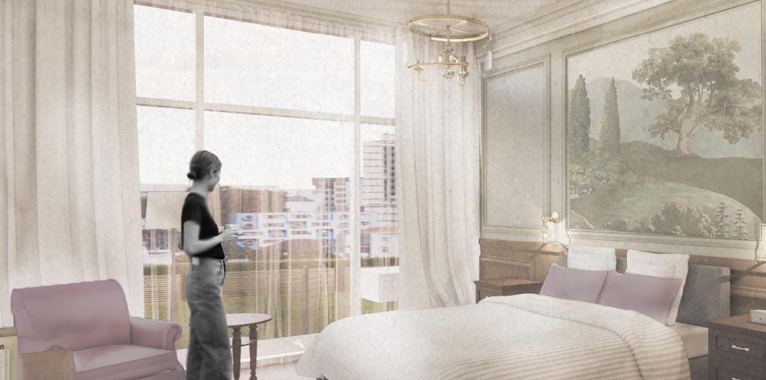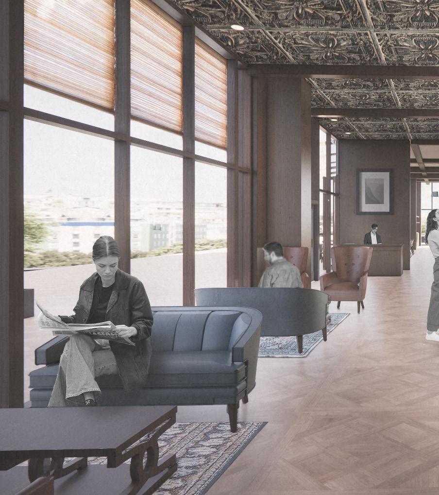 The National Gateway building is a largely underused office space that can be revitalized through adaptive reuse. Feedback from local residents and stakeholders indicates a desire for more engaging and interactive spaces within the building and its surrounding. This project proposes transforming the existing structure into a hotel inspired by the Hoxton brand, reinterpreted to suit the particular area. The goal is to introduce a lively destination that activates the site and contributes energy, character, and community connection to the neighborhood.