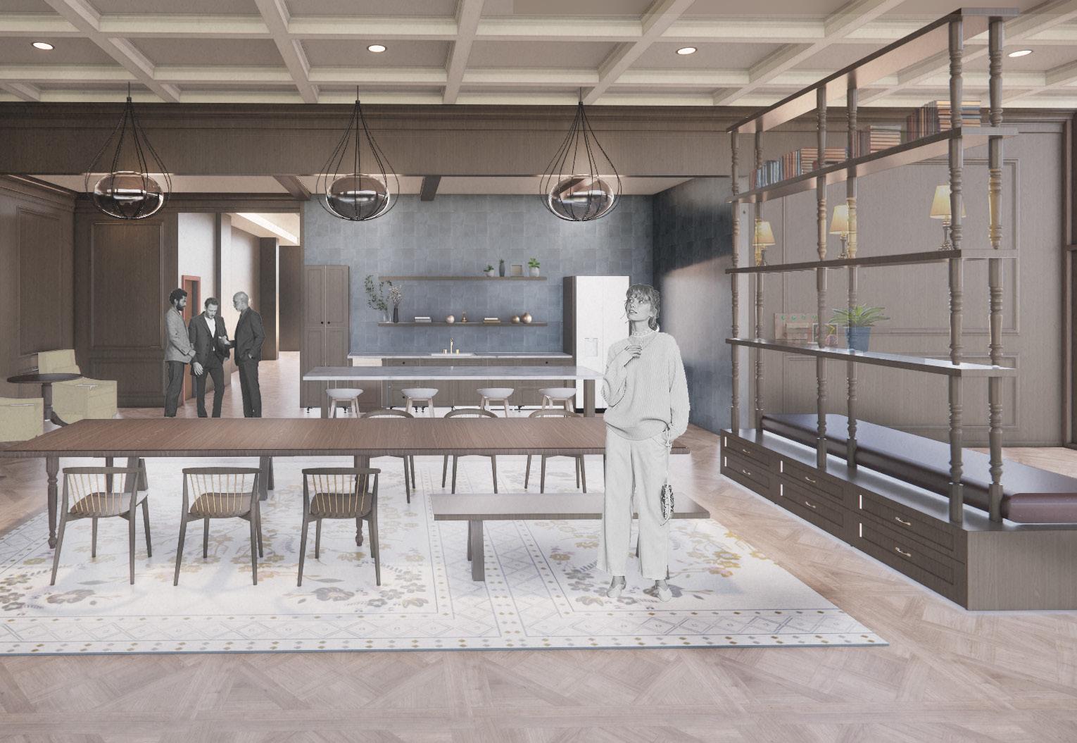 The space is designed for flexibility, accommodating meetings, private dinners, social gatherings, celebrations.