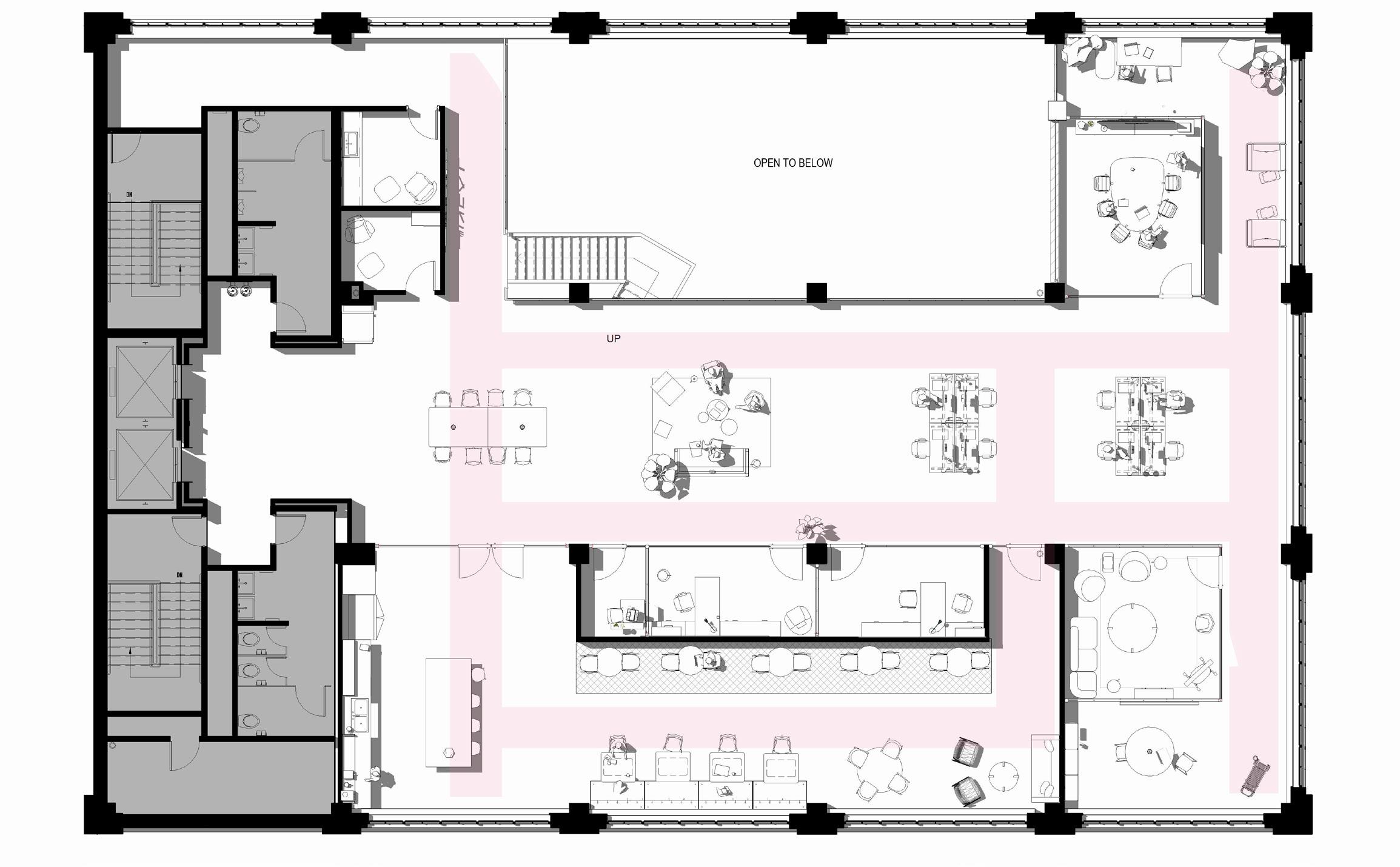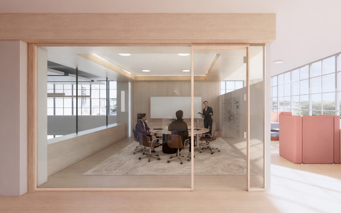 It aims to reflect the city’s easy-tonavigate streets and its connection to a vibrant community created by the grid. In doing so, the design means to increase mental clarity, productivity, and opportunities for social collaboration through its orderly structure within an upbeat, fast-paced, technologydriven environment.