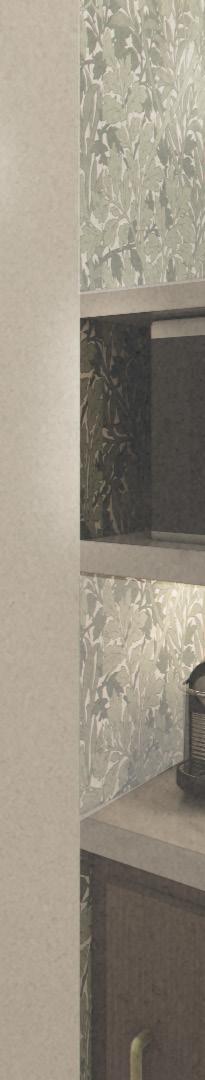It is centered around a communal pantry / kitchen area stocked with free-to-grab teas, coffee, snacks and fruit by day, which in the evening can transform into a private bar.