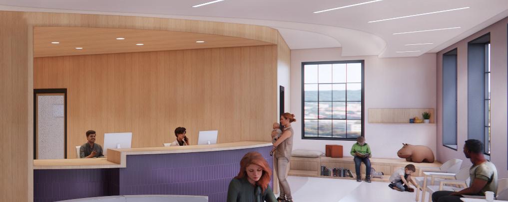 The clinic’s layout follows a “cul-de-sac” concept, with patient-facing “on-stage” areas - reception, waiting, and exam rooms forming the accessible, welcoming loop, while “off-stage” support spaces, such as staff work areas and storage, are tucked away at the ends or behind the loop