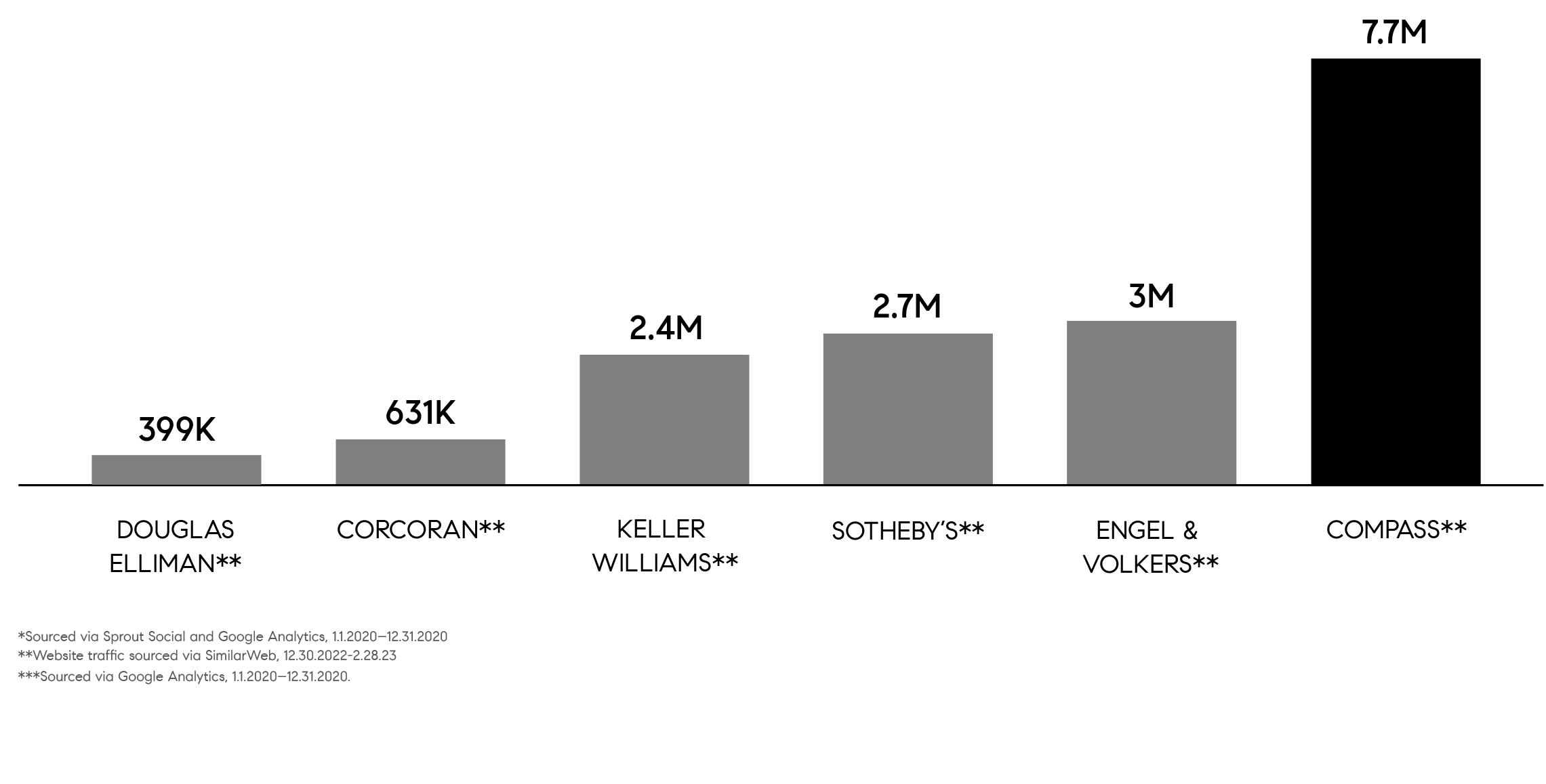 Led by a dedicated in-house team, Compass expertly crafts property campaigns strategically deployed to targeted audiences across five demographic platforms. Consequently, we receive the greatest web traffic when compared with other brokerages.