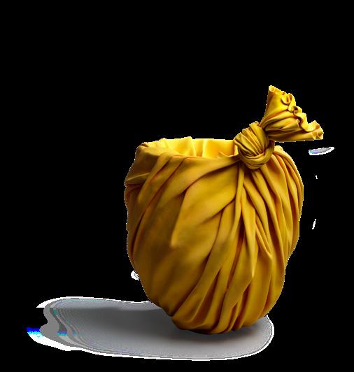 Tanaka Yu (Japanese, b. 1989), Bag Work (Fukuromono), 2018. Glazed Shigaraki stoneware, 24 1/2 × 21 1/2 × 14 1/2 in. Carol & Jeffrey Horvitz Collection of Contemporary Japanese Ceramics. Performing for Curiosity: Exploring Stories of Human Display, installation view. Photo by Chris Lunardi.