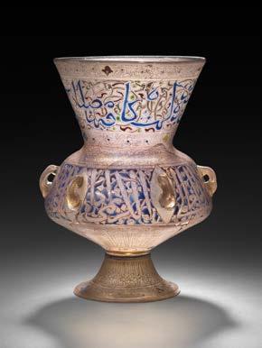 From Ink, Silk and Gold exhibition. Mosque Lamp, Egypt (Cairo), early 1320s. Glass with gold and enamel decoration, 27.5 x 20 cm. Gift of Mr. and Mrs. Edward Jackson Holmes, 37.614. Photograph © 2015 Museum of Fine Arts, Boston.