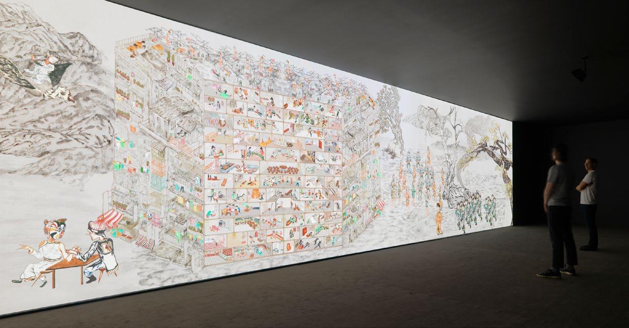 Vancouver-based artist Howie Tsui’s solo exhibition, Retainers of Anarchy (2017), was an amalgamation of martial arts characters and techniques woven together with threads of social and political realities of present-day Hong Kong. Presented as a non-linear counter narrative in the form of a twenty-five-meter-long handdrawn animation, Retainers of Anarchy offered an opportunity to reflect on notions of identity and nationhood using Hong Kong’s past and more recent surge of political unrest.