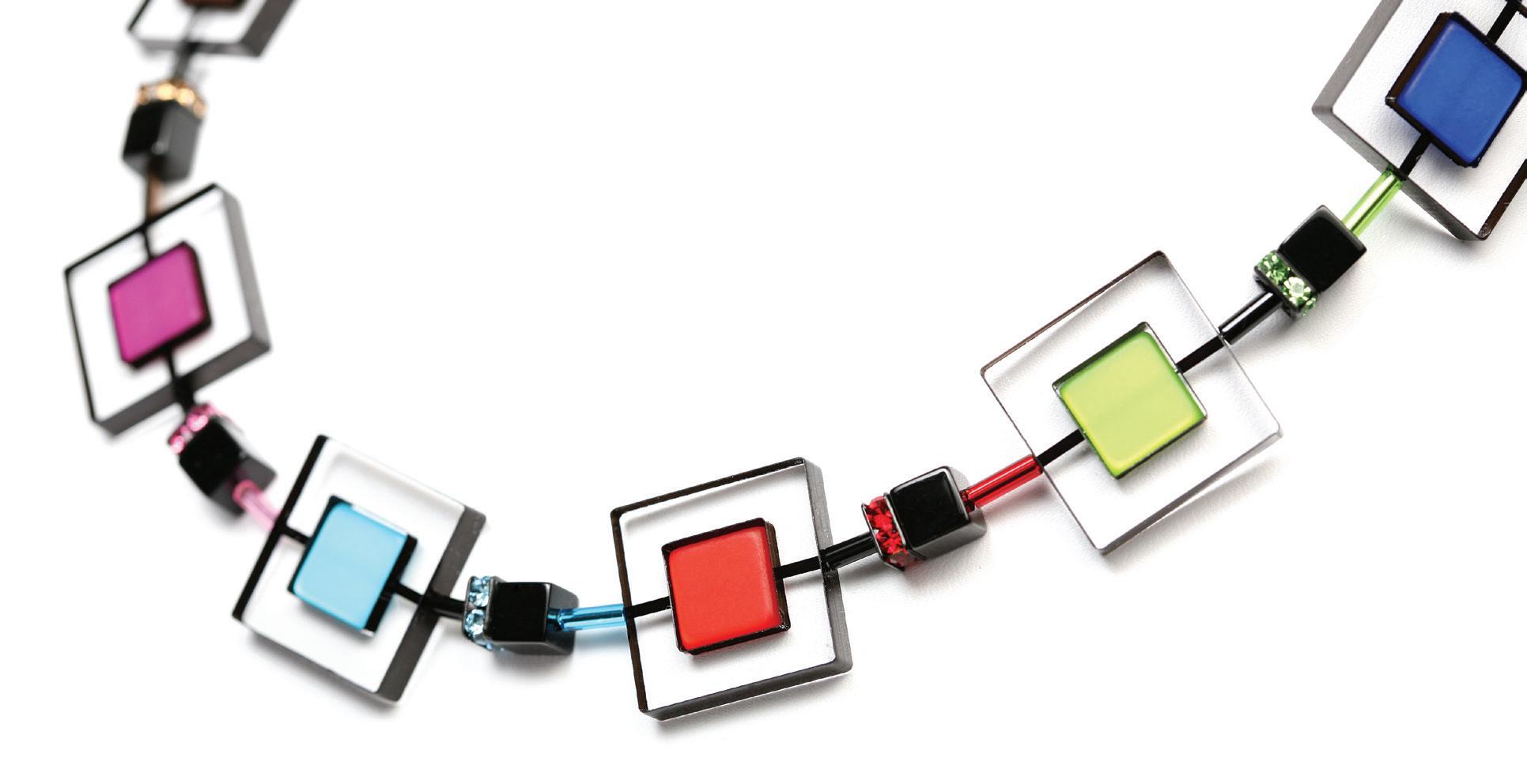 a. Make a statement with this stunning necklace of Lucite and Polaris accentuated with glass and Swarovski rondells. $245