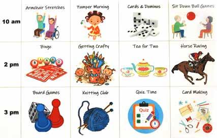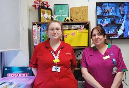 group sessions and one-to-one activities tailored to each patient’s needs. Her weekly s chedule offers chair-based exercises and bingo on Mondays, to pamper mornings and crafts on Tuesdays, and the everpopular ‘tea for two’ and quiz on Wednesdays. Thursdays bring sitdown exercises and horse racing games, while Fridays finish the week with cards, bingo and a book club. Whenever possible, sessions take place in the ward’s dining room, though some activities are brought bedside for those unable to leave their rooms. Carly loves seeing patients regain mobility, confidence and social connection. The work can be demanding,