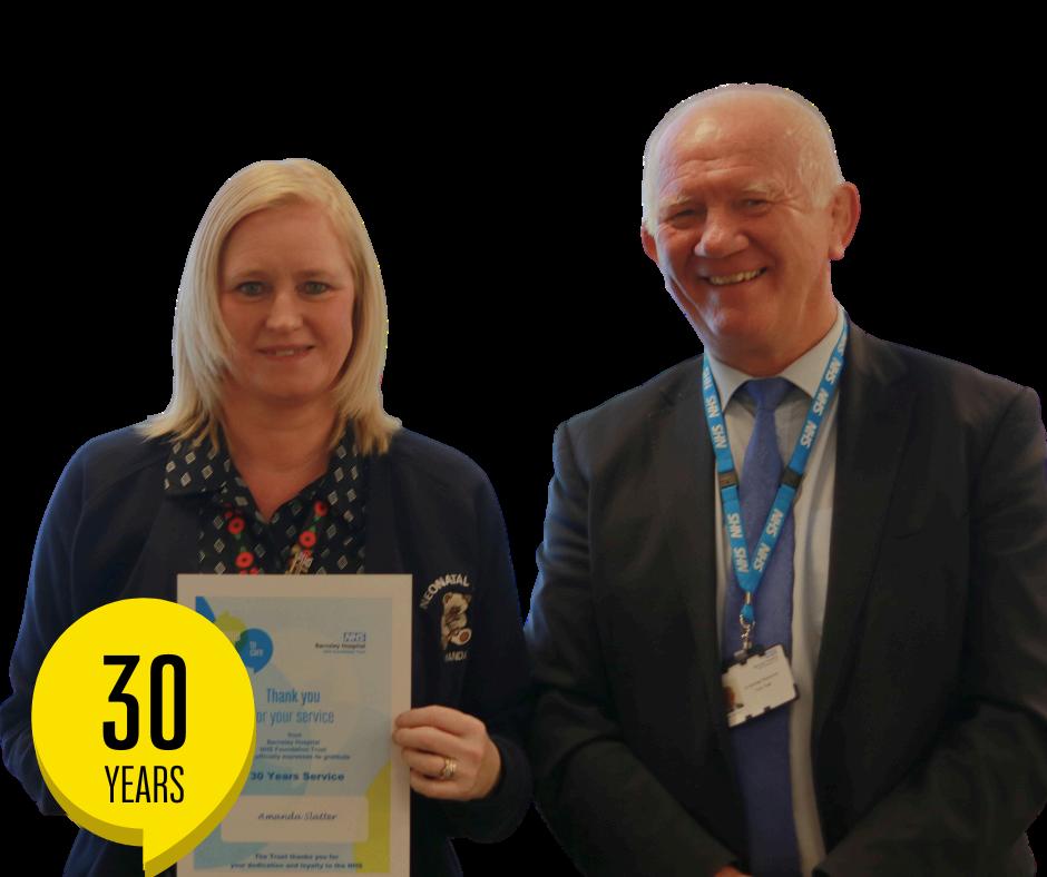 Amanda feels proud to be part of such an incredible team. Congratulations to Amanda on reaching this milestone and for her continued commitment to Barnsley Hospital.