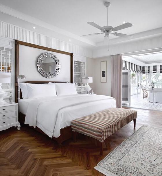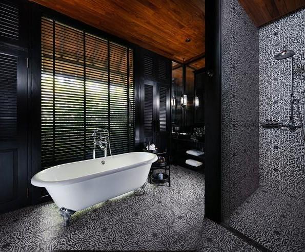Designed as a chic reinterpretation of Singapore’s colonial black and white houses, the monochrome villa is nestled amidst luscious tropical gardens and the sparkling Indian Ocean.