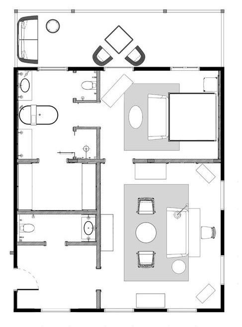 Each with its own separate living room complete with armchairs and sofas you can sink into, and a desk when you are feeling more industrious.