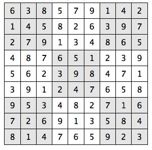Every 3x3 square must contain the numbers from 1 through 9