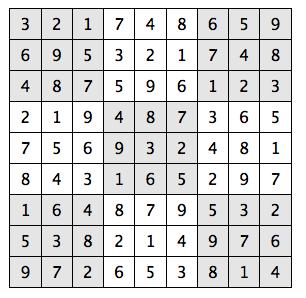 Every 3x3 square must contain the numbers from 1 through 9