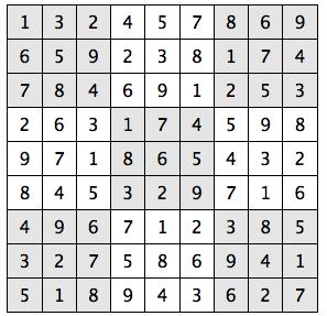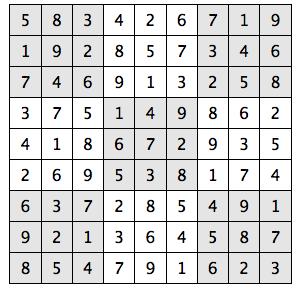Every 3x3 square must contain the numbers from 1 through 9
