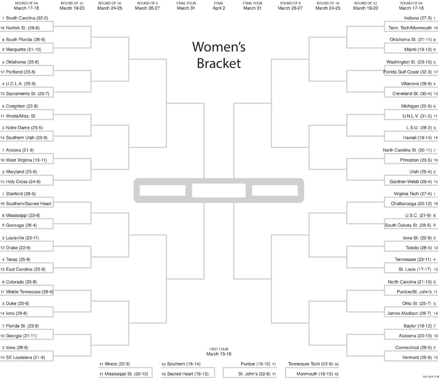 When the 68-team field for the NCAA Division I women’s basketball tournament was announced Sunday night, the least surprising selection was the No. 1 overall seed: South Carolina. The Gamecocks, who are also the reigning champion, will anchor a portion of the bracket that has its regional in nearby Greenville, South Carolina.