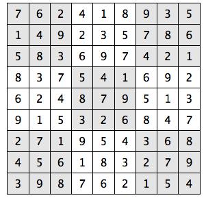 Every 3x3 square must contain the numbers from 1 through 9