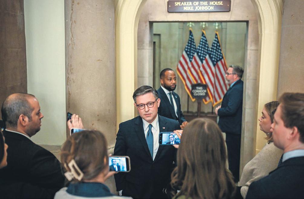 Speaking to reporters on Thursday, Jan. 29, 2026, Johnson promised that the House is “going to do its job” to get the spending deal passed. (Kenny Holston/The New York Times)