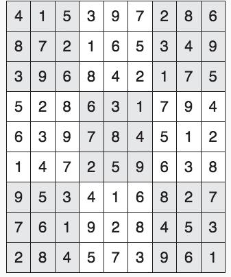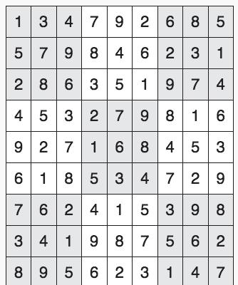 Every 3x3 square must contain the numbers from 1 through 9