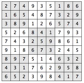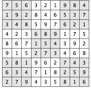 Every 3x3 square must contain the numbers from 1 through 9