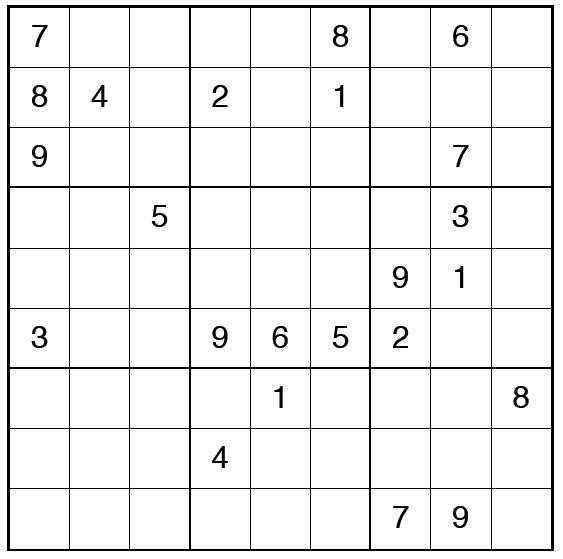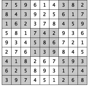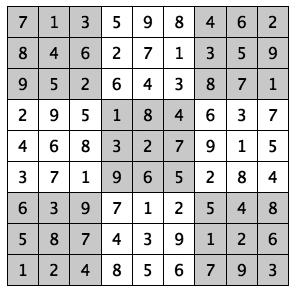 Every 3x3 square must contain the numbers from 1 through 9