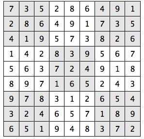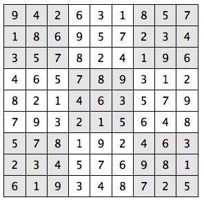 Every 3x3 square must contain the numbers from 1 through 9