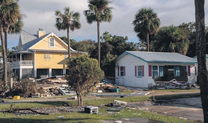 A destroyed home after Hurricane Idalia in Cedar Key, Fla., Aug. 31, 2023. Initial reports suggested that the former hurricane was not as destructive as had been feared. The police linked two deaths in Florida to the storm, although the toll was still being assessed.