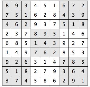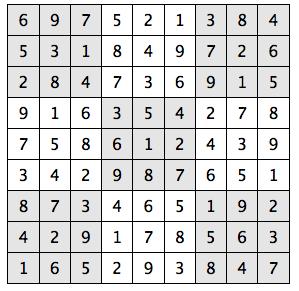 Every 3x3 square must contain the numbers from 1 through 9