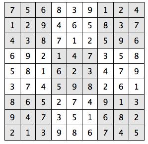 Every 3x3 square must contain the numbers from 1 through 9