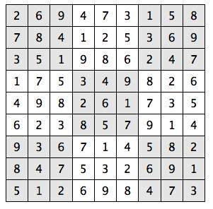 Every 3x3 square must contain the numbers from 1 through 9