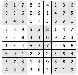 Every 3x3 square must contain the numbers from 1 through 9