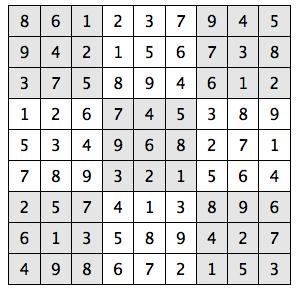 Every 3x3 square must contain the numbers from 1 through 9