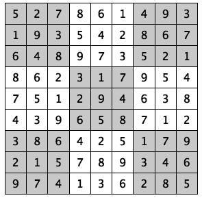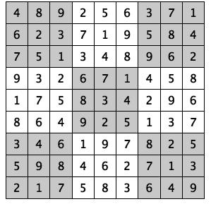 Every 3x3 square must contain the numbers from 1 through 9