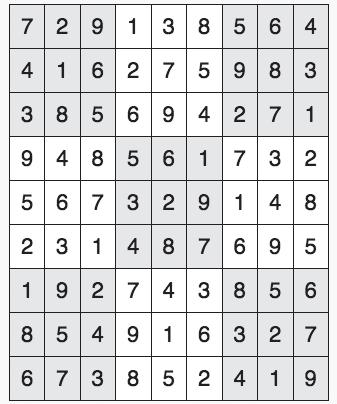 Every 3x3 square must contain the numbers from 1 through 9