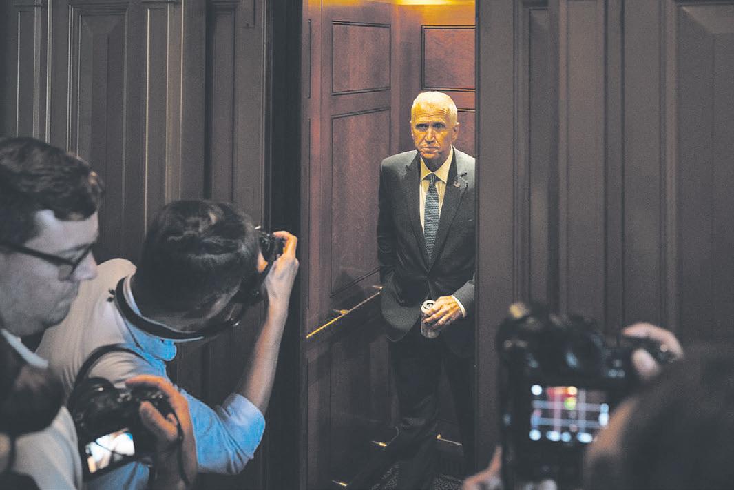 Sen. Thom Tillis (R-N.C.) leaves a Senate Republican luncheon as the Senate holds a “vote-arama” to pass President Donald Trump’s domestic policy bill on Capitol Hill in Washington, on Monday, June 30, 2025. President Donald Trump is pressuring Republicans to fall in line behind his sprawling domestic policy bill, even though it has elements that could put their party’s hold on Congress in greater peril in next year’s midterm elections. (Haiyun Jiang/The New York Times)