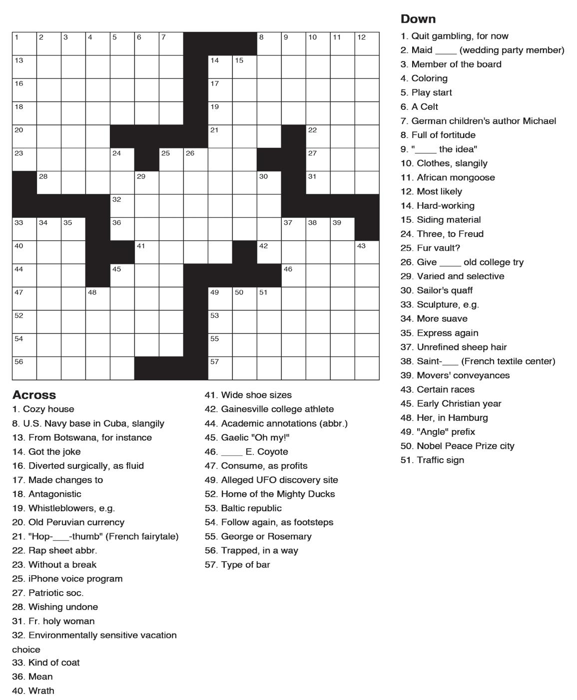 Answers to the Sudoku and Crossword on page 21