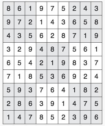 Every 3x3 square must contain the numbers from 1 through 9
