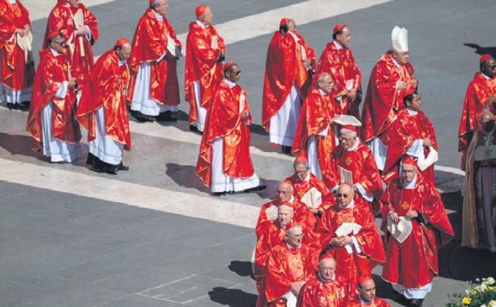 Cardinals enter St. Peter’s Square in Vatican City for the funeral of Pope Francis, on Saturday, April 26, 2025. The cardinals will not be allowed to leave the Vatican until a two-thirds majority agrees on the next pope. (James Hill/The New York Times)